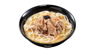 富士そば初の「辛味噌」スープのそばです。ピリ辛の味噌とそばが相性抜群。食べながらラー油を溶かすと、新しい辛さが広がる「味変」が楽しめます。ひとつで二度おいしいそばです。