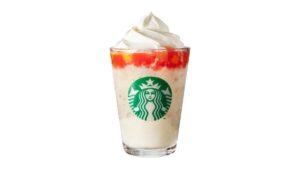 仕上げには、ストロベリー、黄桃、オレンジ、白桃の4種類の果肉入りミックスフルーツジェリーを重ね、ひと口目から爽やかな酸味と果実の甘みが広がる鮮やかな味わいに。さらに、フラペチーノ®のために深煎りしたクラッシュアーモンドを加えることで、香ばしい食感とナッツのコクがアクセントとなり、素材の組み合わせによる味わいの変化を楽しめます。